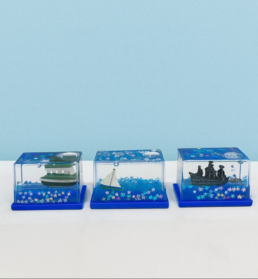 این مدل آکواریوم در سه طرح محبوب عرضه میشود: کشتی کلاسیک، قایق بادبانی و ناو جنگی. حرکت اکلیلهای ستارهای داخل آب جلوهای زیبا و آرامبخش ایجاد میکند که برای دکور اتاق خواب، میز کار، قفسه کتاب، میز آرایش، هدیه دادن و حتی ویترین فروشگاه بسیار مناسب است. پایهی آبی رنگ محصول، جذابیت آن را بیشتر کرده و باعث میشود محصول روی هر سطحی پایدار قرار بگیرد.