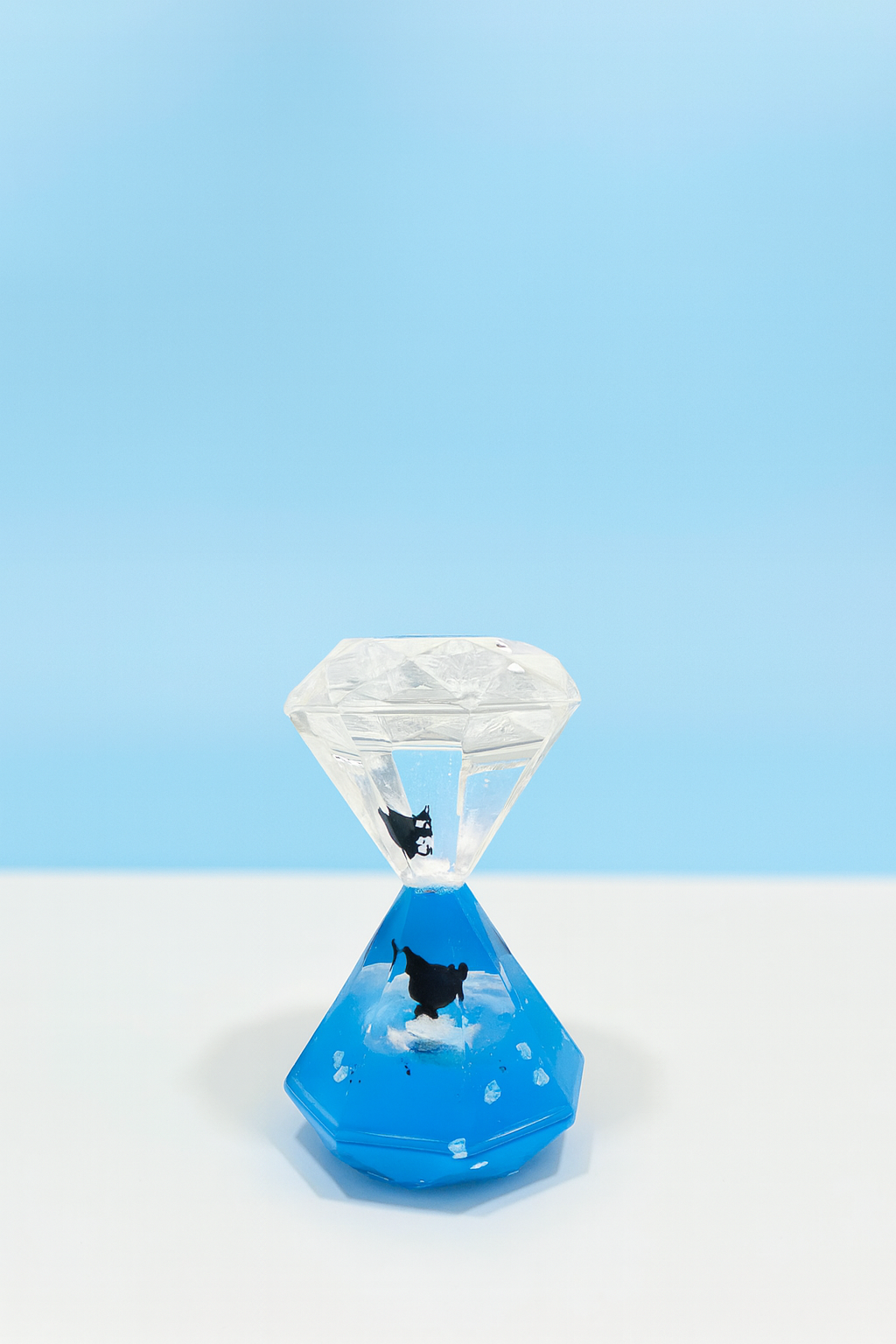 دکوری مایع الماسی با طراحی خاص، مایع آبی و کاراکتر فانتزی درون آن، ترکیبی از زیبایی و آرامش است.