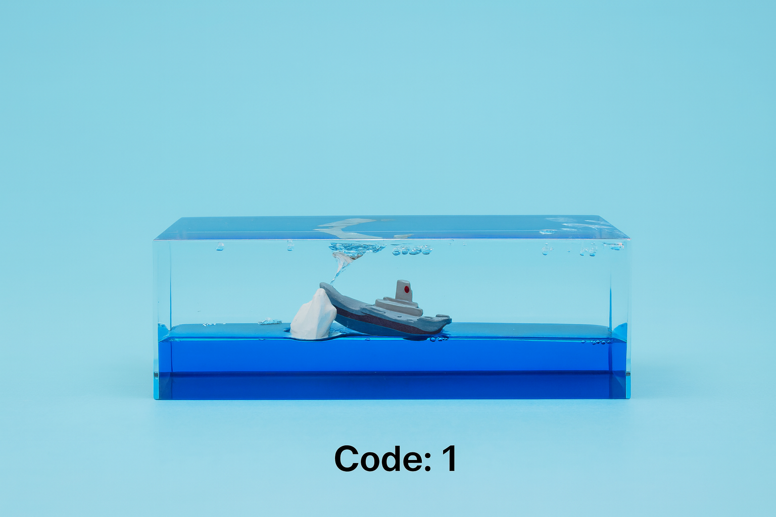 یکی از ویژگیهای برجسته این ماکت، جزئیات ظریف کشتی و کوه یخ است که با ترکیب رنگ آبی، سفید و مشکی، یادآور داستان معروف کشتی تایتانیک است. شفافیت بدنه و انعکاس نور روی سطح آب جلوهای آرامشبخش ایجاد میکند و برای هدیه دادن به دوستان و خانواده نیز گزینهای ایدهآل محسوب میشود.
