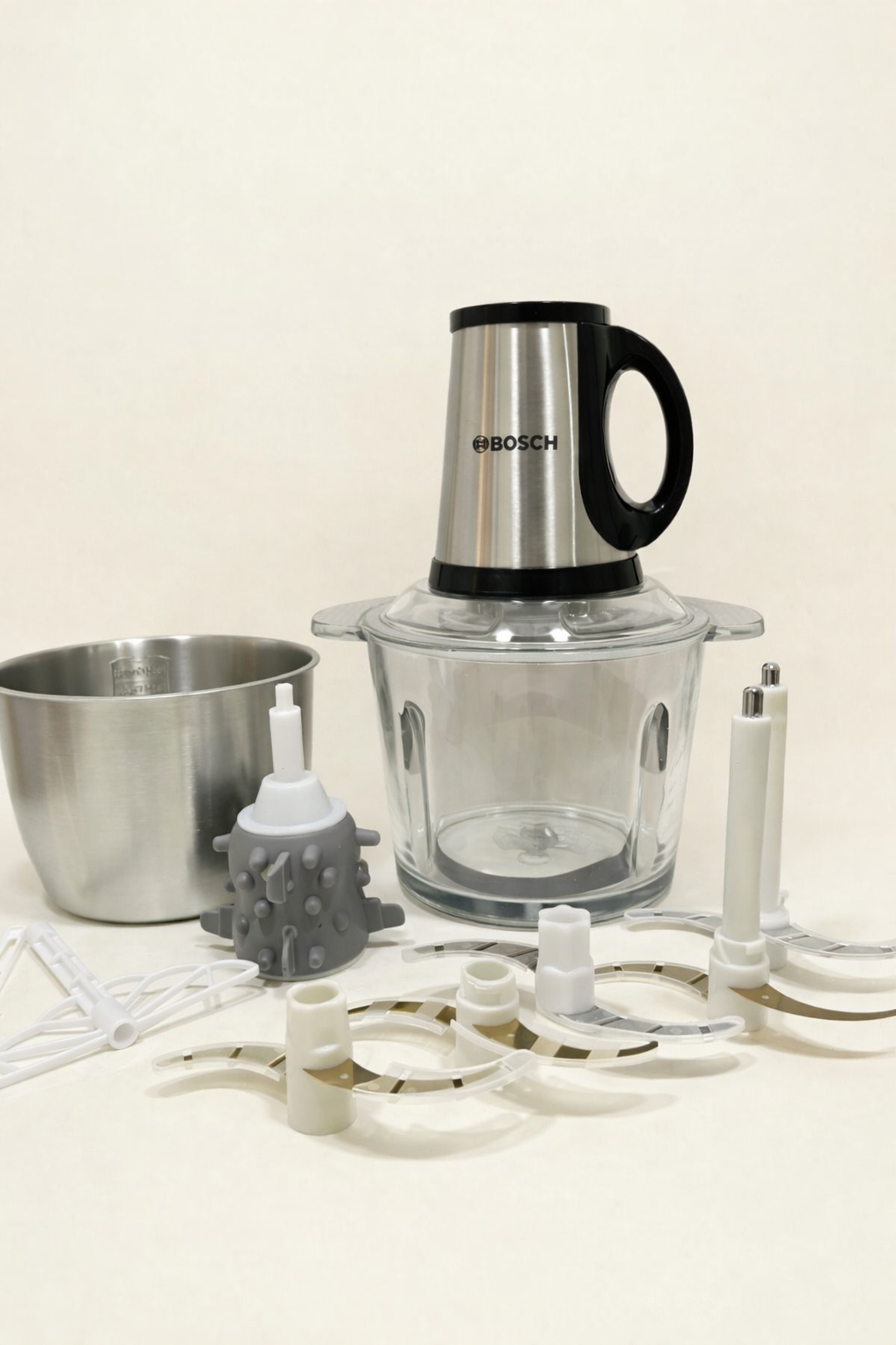 خردکن چندکاره بوش یکی از کاربردیترین و ضروریترین لوازم آشپزخانه برای افرادی است که به سرعت، کیفیت و دقت در آشپزی اهمیت میدهند. این خردکن با طراحی مدرن، موتور قدرتمند و متعلقات متنوع، امکان خرد کردن، مخلوط کردن، همزدن و آمادهسازی انواع مواد غذایی را به سادهترین شکل ممکن فراهم میکند.