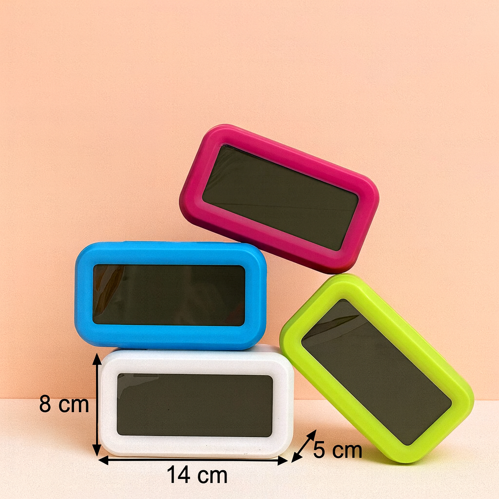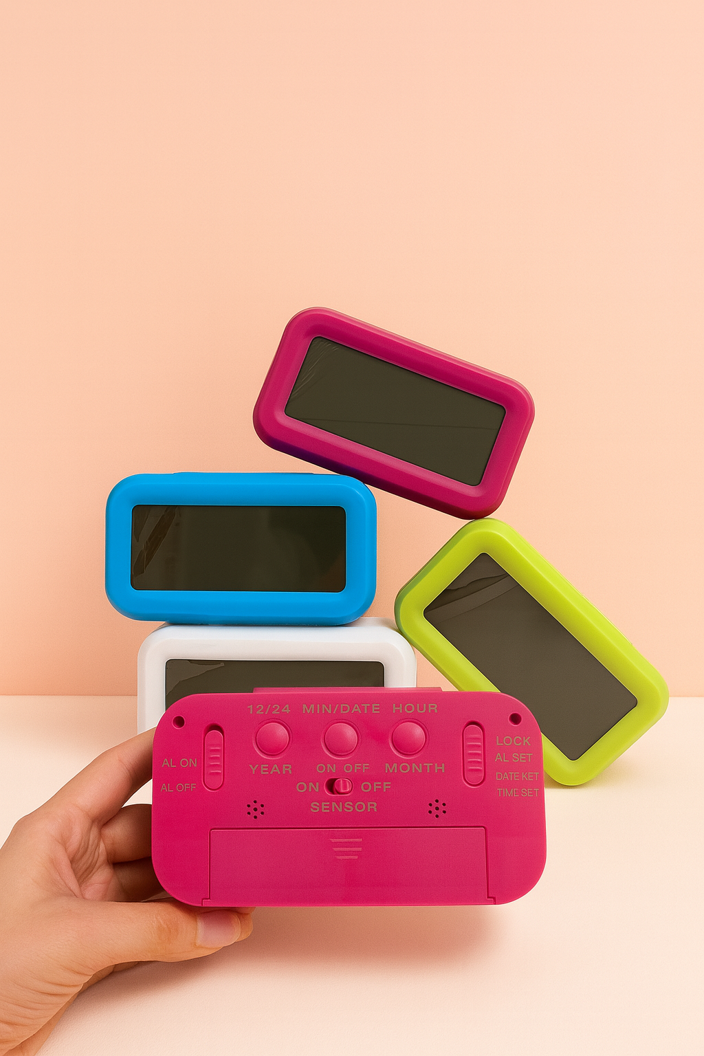 ساعت دیجیتال رومیزی مدل Sensor یک ساعت مدرن، رنگارنگ و کاربردی است که با طراحی ساده و جذاب خود، برای اتاق خواب، میز کار و محیطهای آموزشی انتخابی ایدهآل محسوب میشود. این ساعت با رنگبندی شاد و متنوع شامل صورتی، آبی، سبز و سفید، حس انرژی و نشاط را به فضای شما اضافه میکند و در عین حال کارایی بالایی دارد.