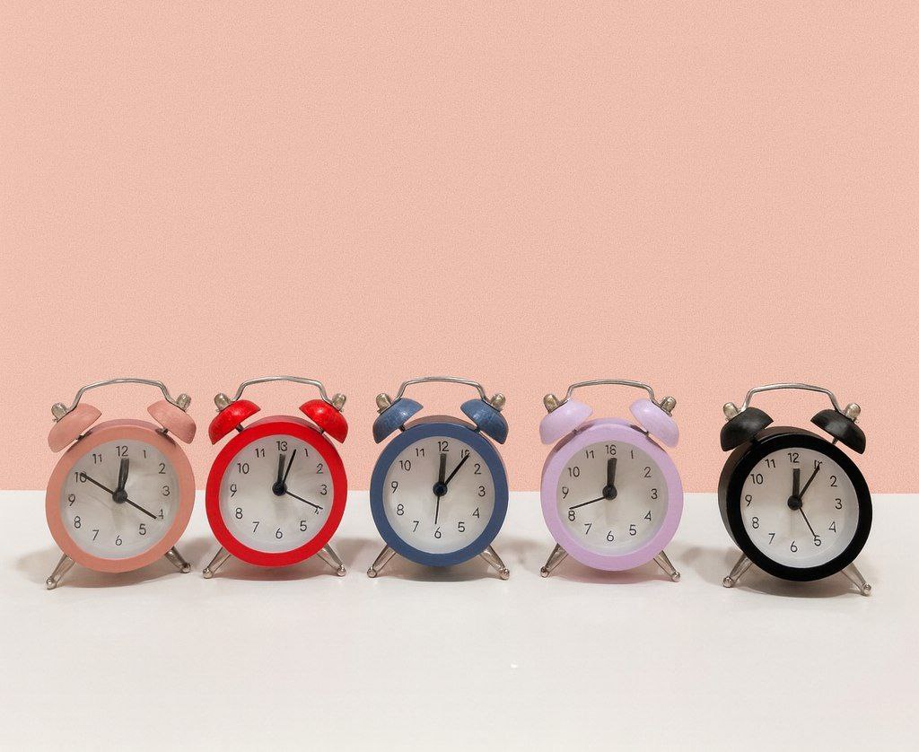 ساعت رومیزی فلزی رنگی کوچک با طراحی دو زنگ کلاسیک، مناسب دکور اتاق، میز کار و هدیه. دارای بدنه فلزی با کیفیت و موتور بیصدا.
