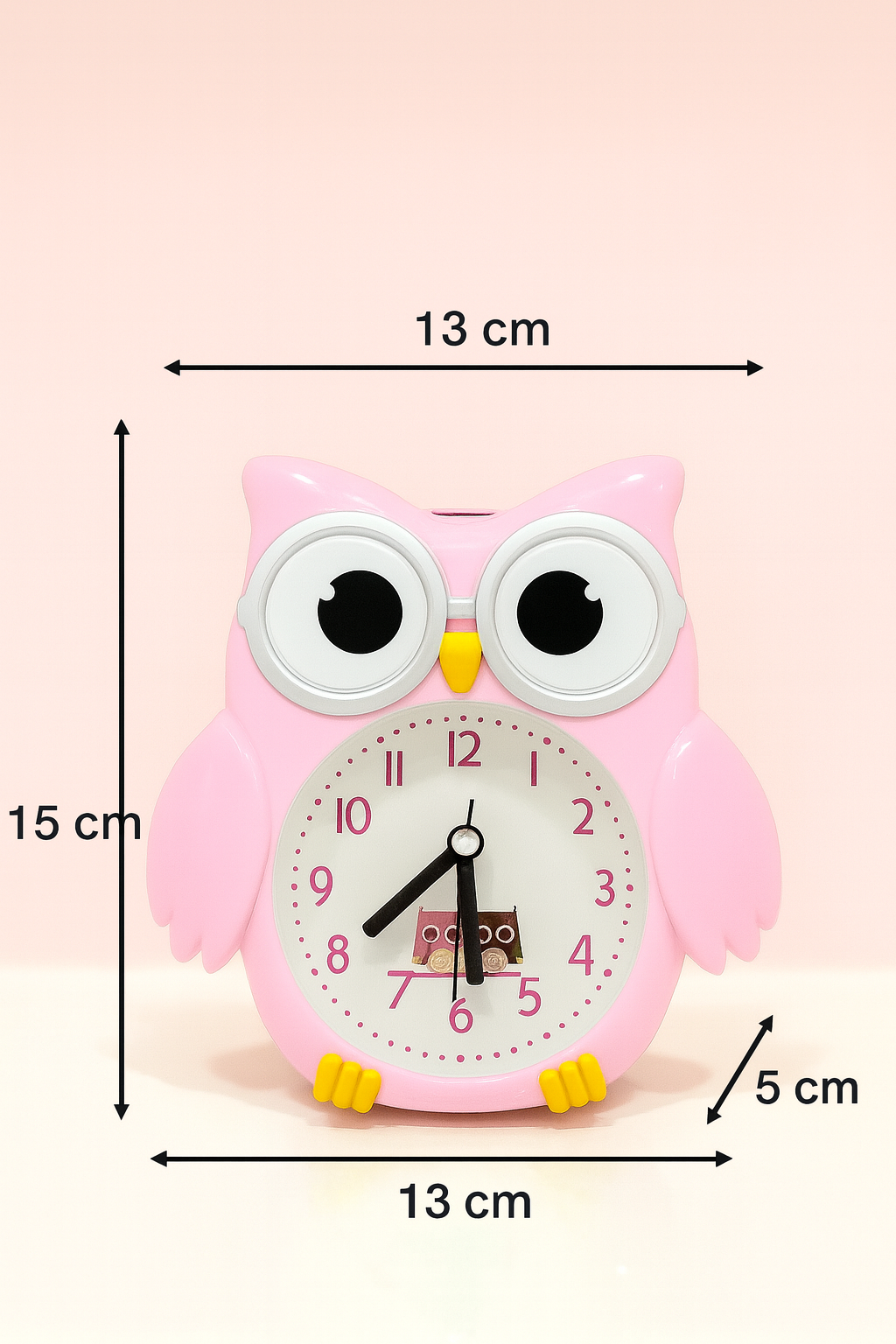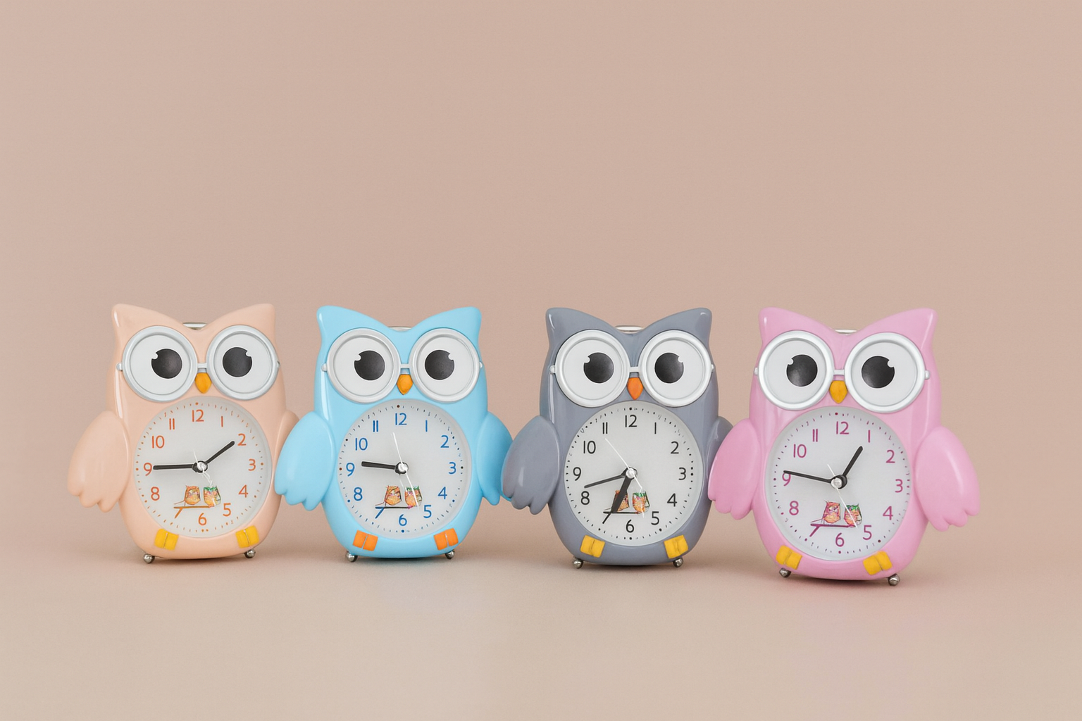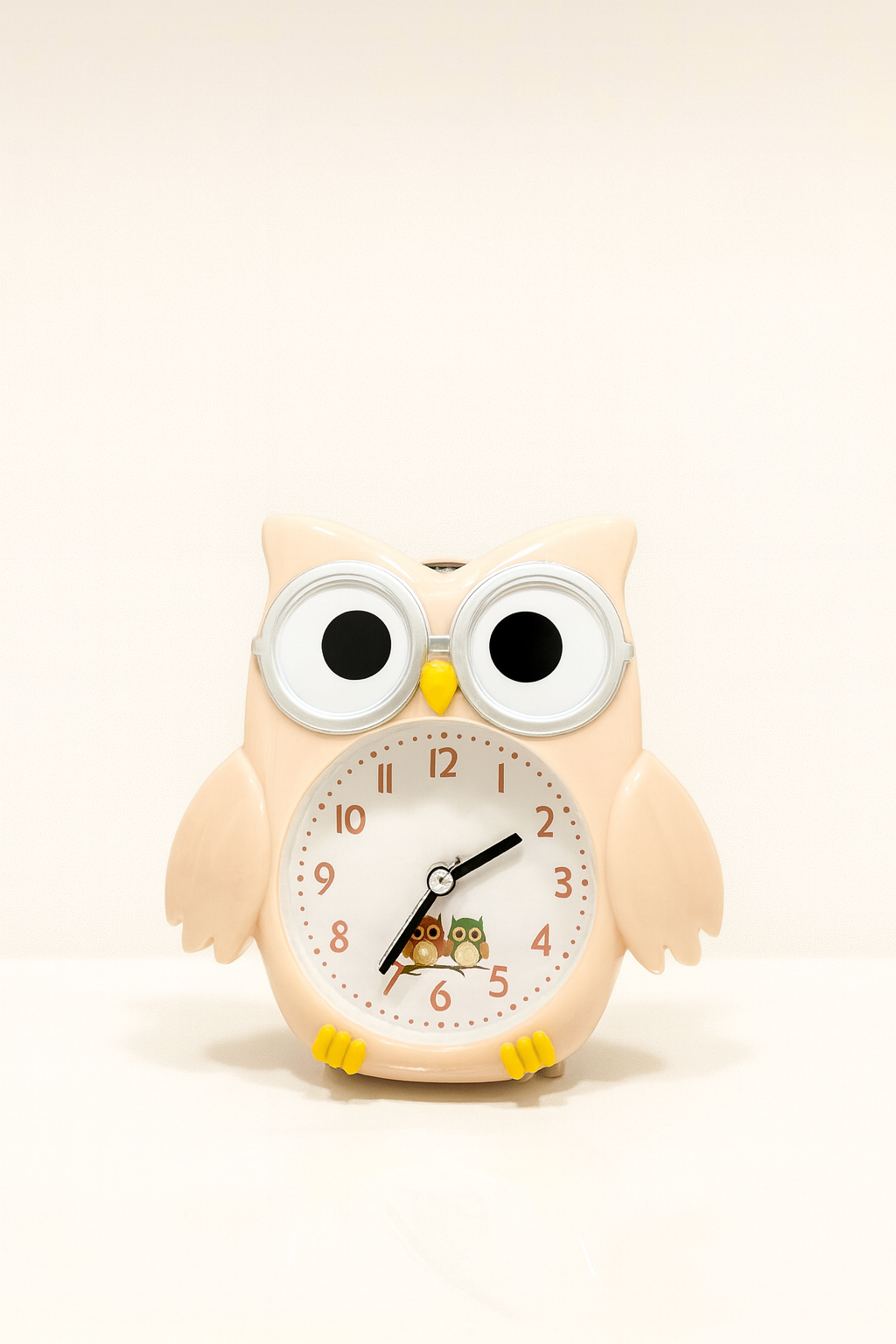 ساعت رومیزی طرح جغد در چهار رنگ زیبا (صورتی، آبی، طوسی و کرمی) با طراحی بامزه و چشمان بزرگ متحرک، گزینهای عالی برای اتاق کودک، میز کار یا دکور فانتزی است. سبک، مقاوم و با صدای آرام.