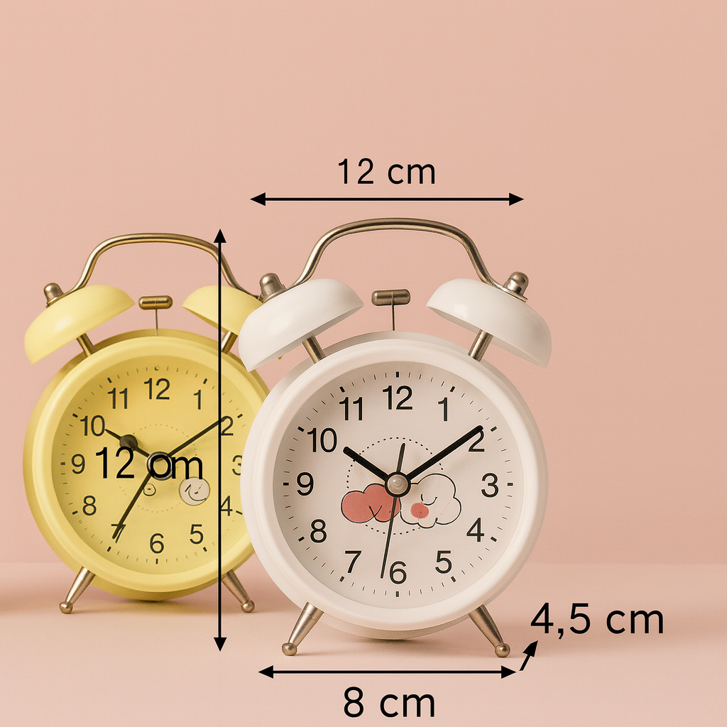 ساعت رومیزی دو زنگ فانتزی نه تنها برای نمایش زمان بلکه به عنوان یک عنصر دکوری کاربردی نیز عمل میکند. ابعاد مناسب آن (طول ۱۲ سانتیمتر، عرض ۸ سانتیمتر و قطر ۴/۵ سانتیمتر) باعث میشود به راحتی روی میز آرایش، میز تحریر یا قفسه قرار گیرد و جلوهای زیبا به فضا بدهد.