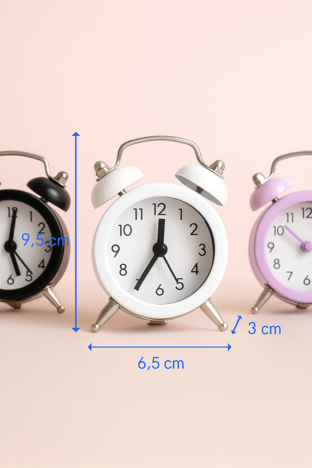 ساعت زنگدار فانتزی رومیزی در شش رنگ مختلف، ترکیبی از طراحی کلاسیک و رنگبندی مدرن است که میتواند روحی تازه به فضای اتاق یا میز کار شما ببخشد. این ساعتها با بدنه فلزی مقاوم و رنگهای متنوع شامل زرد شاد، مشکی کلاسیک، سفید ساده، بنفش ملایم، آبی پاستلی و آبی روشن طراحی شدهاند تا پاسخگوی هر سلیقه و سبک دکوراسیونی باشند.