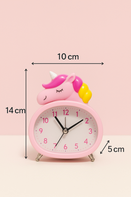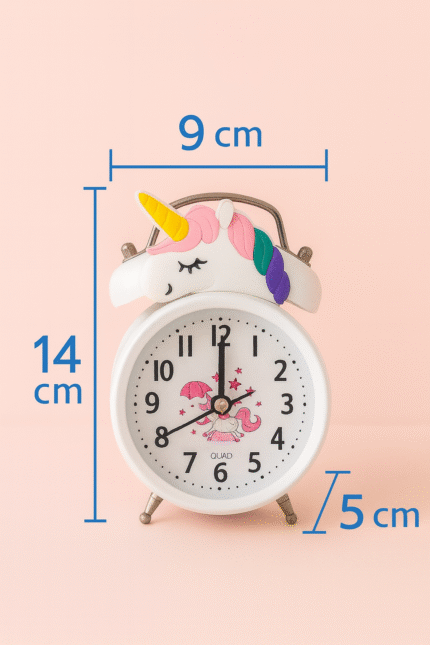 ارتفاع ساعت حدود ۱۲ سانتی‌متر، عرض آن ۸ سانتی‌متر و قطر آن ۴/۵ سانتی‌متر است؛ ابعادی مناسب برای قرارگیری روی میز کار، میز آرایش، قفسه دکوری یا میز کنار تخت. این اندازه‌ها باعث می‌شوند ساعت در هر محیطی به‌راحتی دیده شود بدون آن‌که فضای زیادی اشغال کند.