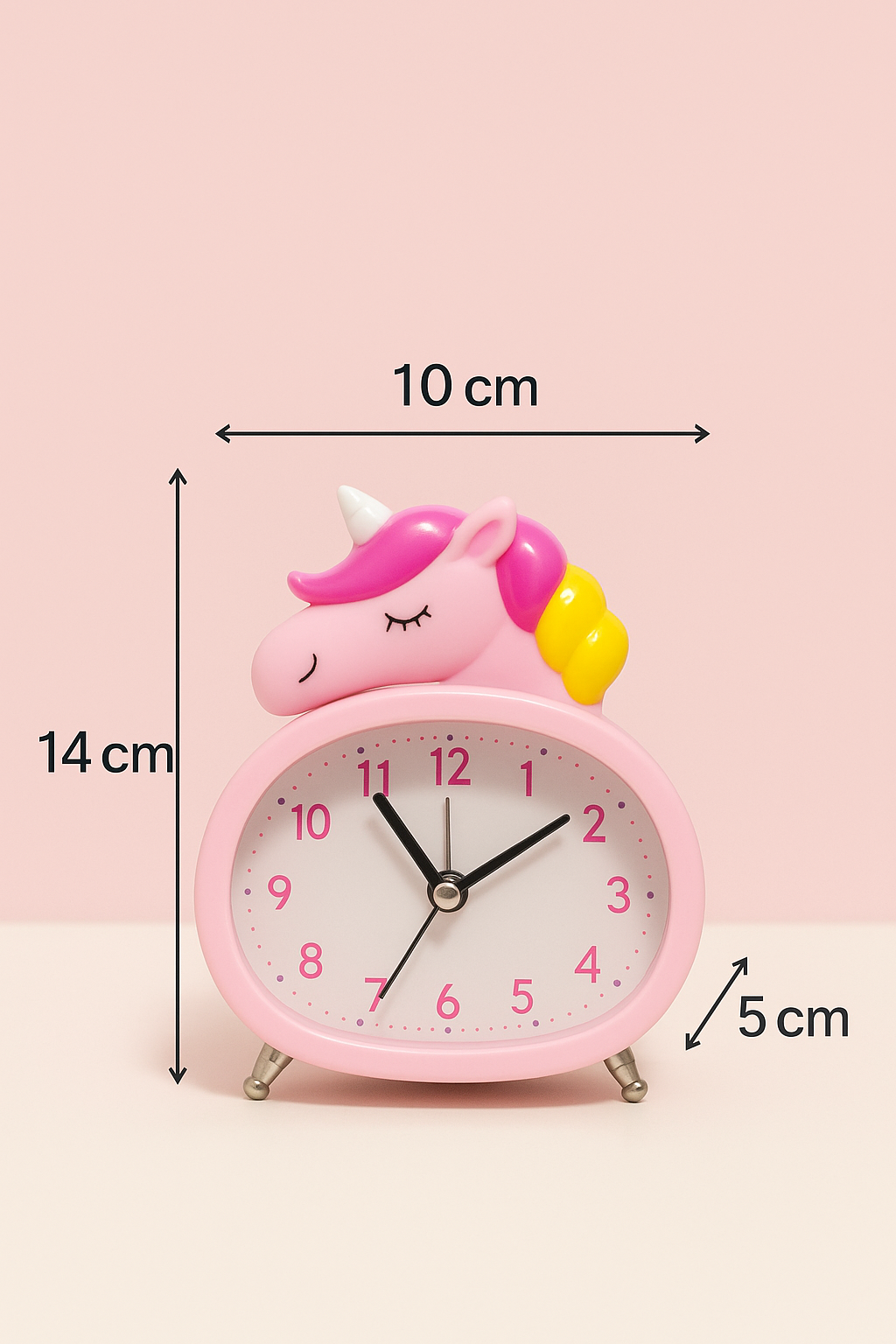 ساعت رومیزی طرح یونیکورن یکی از فانتزی‌ترین و محبوب‌ترین مدل‌های ساعت برای اتاق خواب، میز تحصیل و دکور کودکانه است. طراحی جذاب این ساعت با چهره‌ی آرام و خواب‌آلود اسب تک‌شاخ (یونیکورن) باعث می‌شود هر بار نگاه کردن به آن حس لطافت و شادی خاصی ایجاد کند. این مدل در سه رنگ دل‌نشین صورتی، سفید و آبی عرضه شده که هرکدام به‌راحتی با دکور اتاق هماهنگ می‌شوند و جلوه‌ای خاص به فضا می‌بخشند.