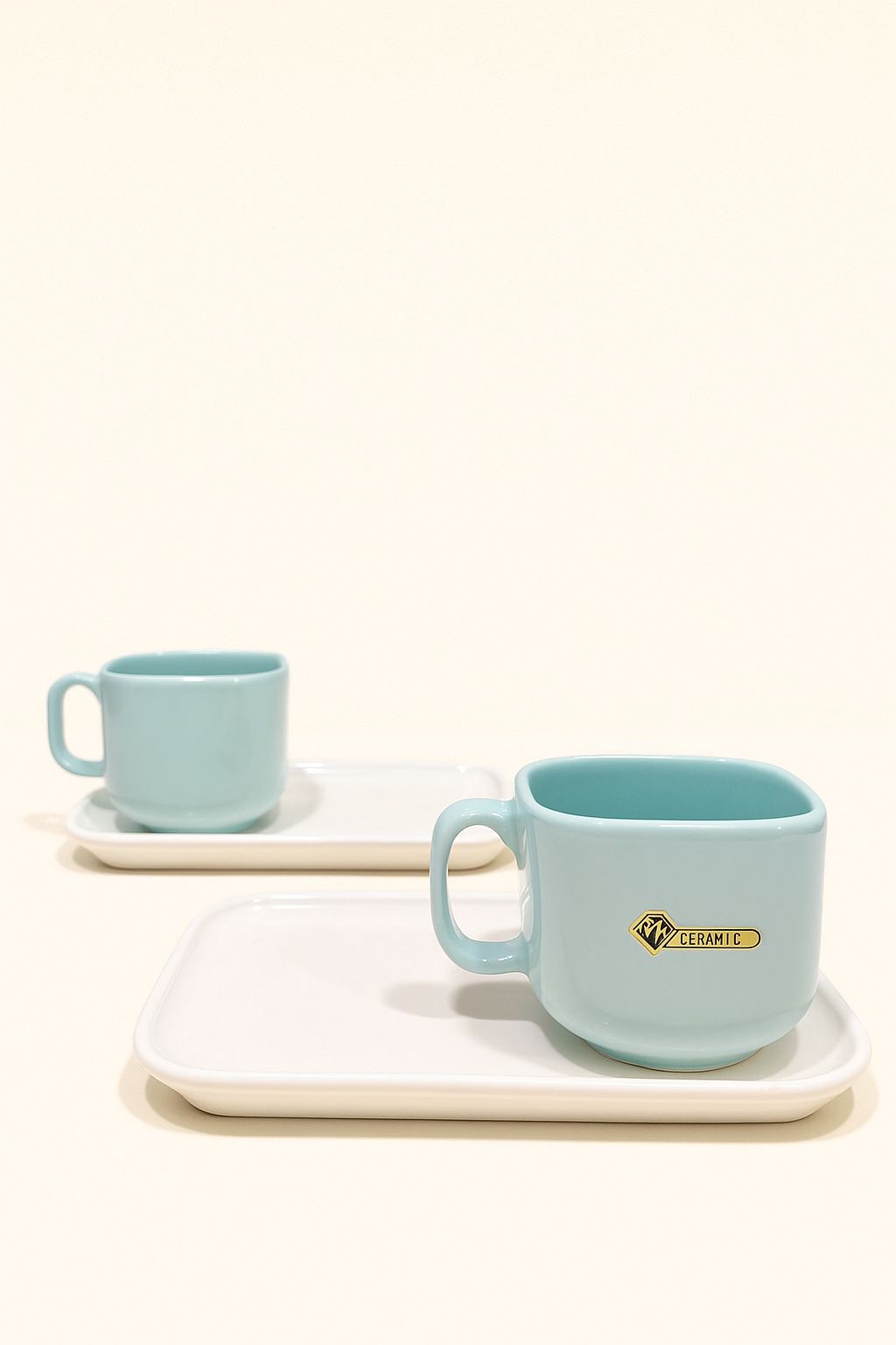 ست فنجان و نعلبکی سرامیکی RK مدل مربع با رنگ های پاستیلی مات و طراحی خاص، انتخابی شیک و مدرن برای پذیرایی و نوشیدنیهای گرم شماست.