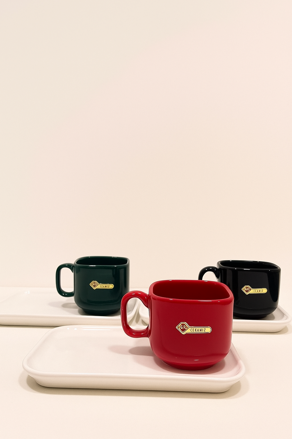 این فنجانها از سرامیک مرغوب ساخته شدهاند و دارای لعاب براق و درخشان هستند که در برابر حرارت و شستوشوی مداوم مقاومت بسیار بالایی دارند. رنگهای خاص قرمز، مشکی و سبز تیره در کنار لوگوی طلایی جلوهای لوکس و مدرن به این محصول دادهاند.