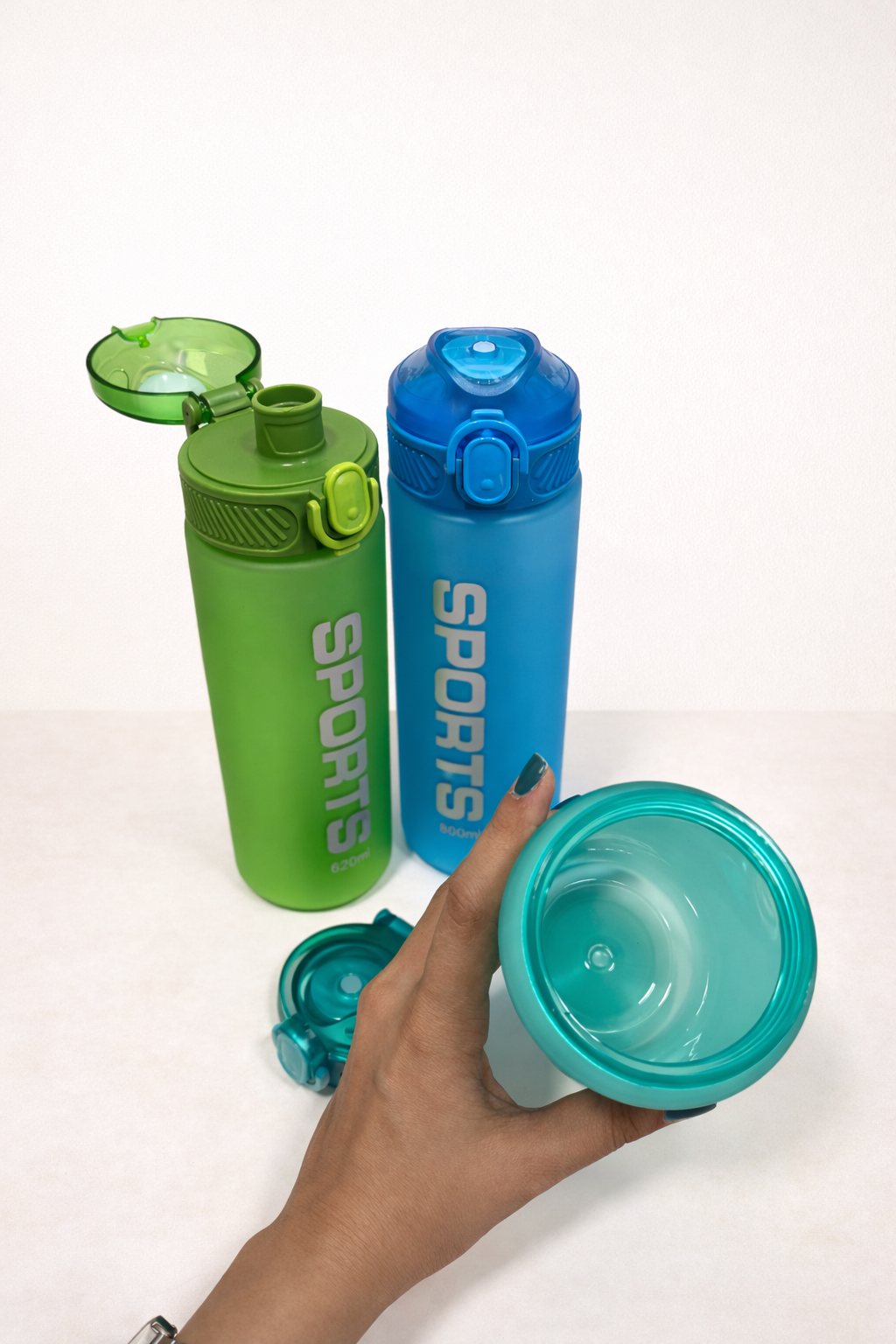 بدنه این محصول از متریال بسیار مقاوم و نشکن ساخته شده است که در برابر ضربههای ناگهانی یا سقوط از ارتفاع کم کاملاً مقاوم است. پوشش مات روی بدنه نه تنها ظاهری بسیار جذاب و مدرن به آن بخشیده، بلکه از نظر عملکردی نیز عالی است؛ این پوشش از به جای ماندن اثر انگشت جلوگیری کرده و باعث میشود حتی زمانی که دستان شما مرطوب است، قمقمه از دستتان سر نخورد. رنگهای شاد و زندهای مانند سبز فسفری، آبی کاربنی و فیروزهای، انرژی مضاعفی به استایل ورزشی شما میبخشند