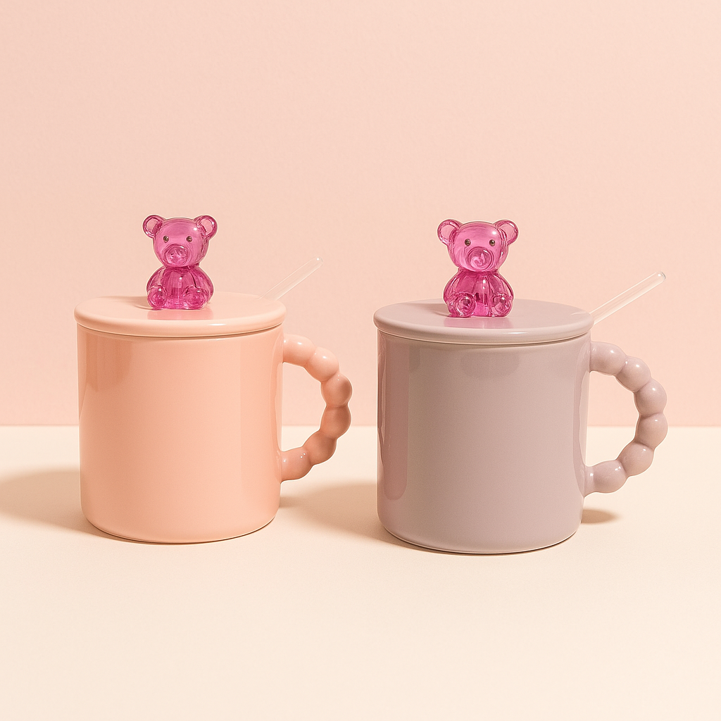ماگ خرسی دربدار سرامیکی Cute Bear Mug یکی از جذابترین و پرفروشترین مدلهای ماگ فانتزی است که با طراحی خاص و رنگهای ملایم، حس شادی و لطافت را به فضای روزمره شما میآورد. این ماگ زیبا در دو رنگ پاستلی محبوب – صورتی هلویی و یاسی ملایم – طراحی شده و درب آن با عروسک خرسی ژلهای شفاف صورتی تزئین شده است که در نور، درخشش دلانگیزی دارد.
