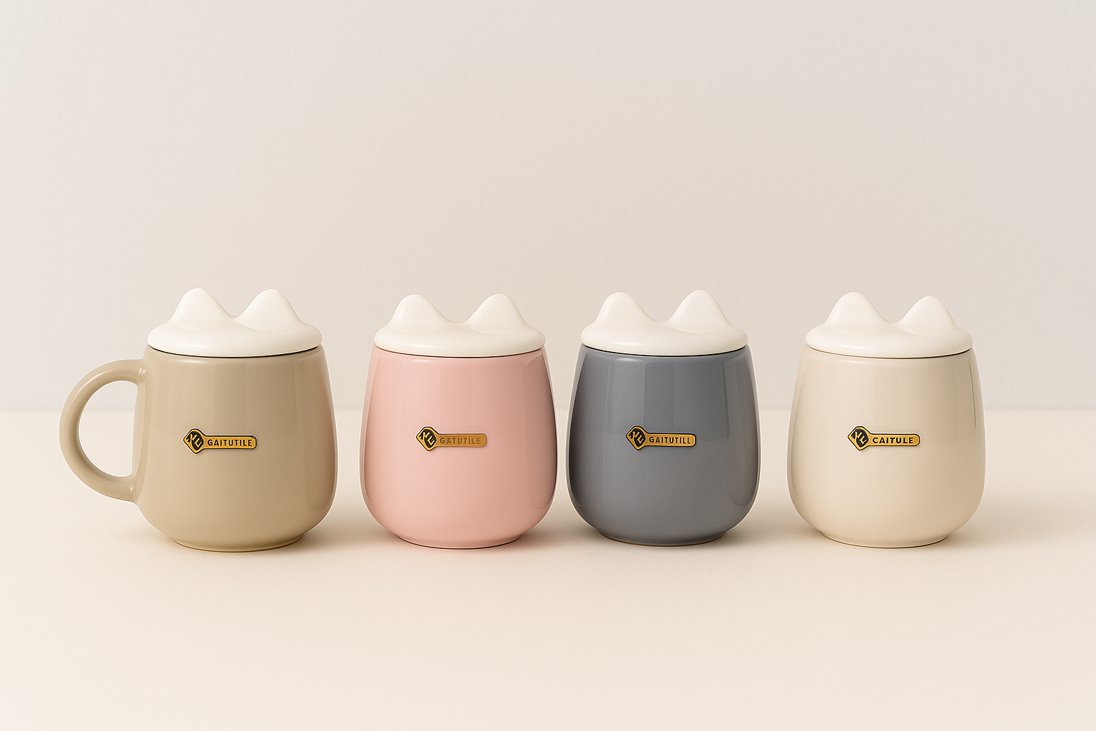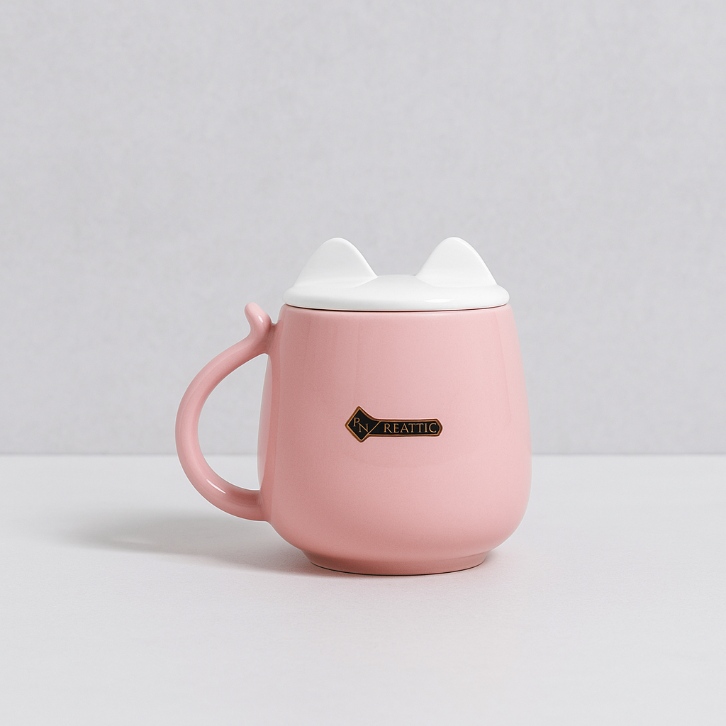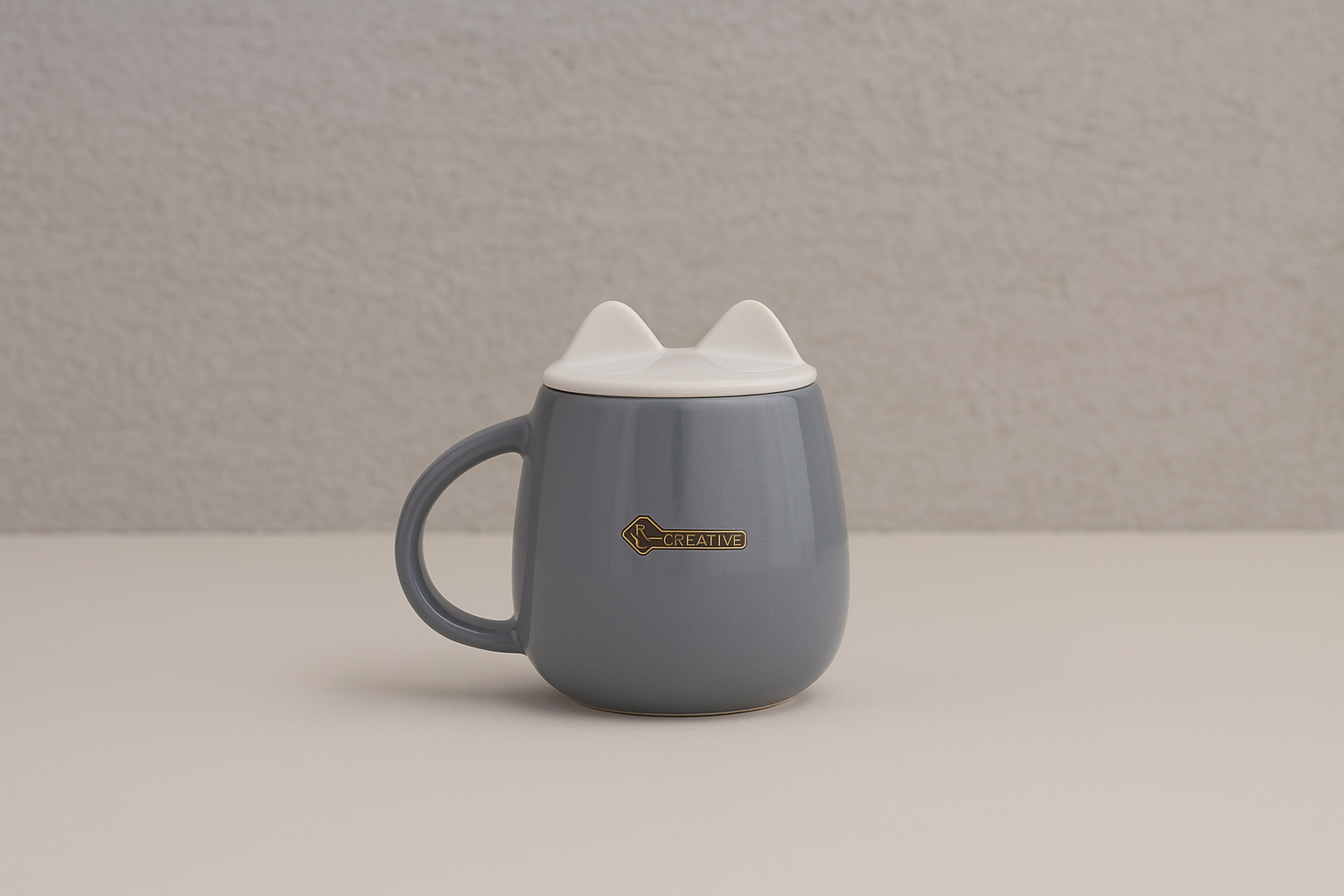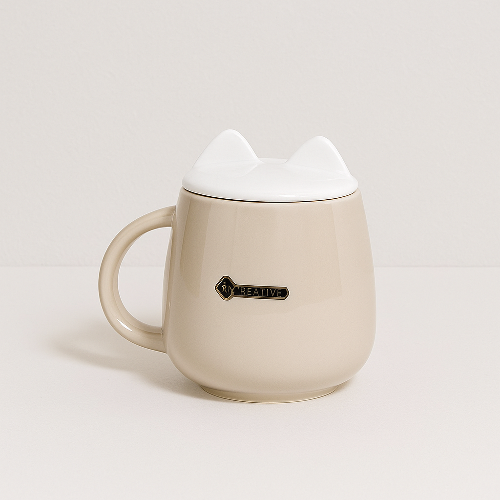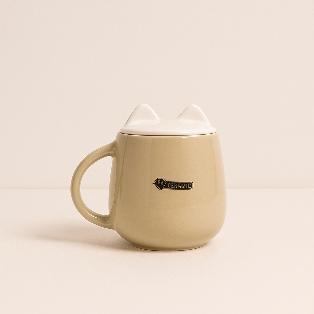 ماگ فانتزی با درپوش گوشدار، انتخابی خاص برای چای، قهوه یا دمنوش. ترکیب طراحی بامزه با رنگهای ملایم و مینیمال، مناسب برای هدیه یا استفادهی روزمره.