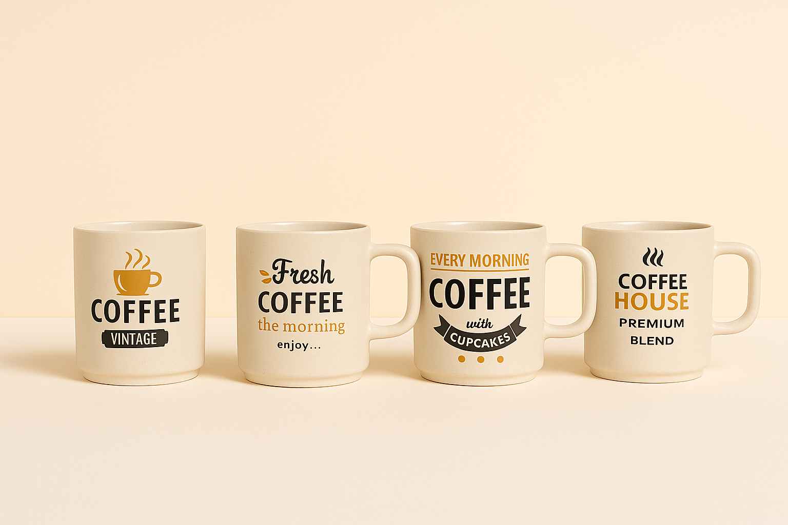 ماگها از سرامیک مقاوم و باکیفیت بالا ساخته شدهاند و سطحی صاف و مات با رنگ کرم روشن دارند که جلوهای مینیمال و مدرن به فضای آشپزخانه یا میز کار شما میدهد. نوشتههای انگلیسی روی هر ماگ با فونتهای متفاوت و رنگهای گرم مانند مشکی، نارنجی و قهوهای طراحی شدهاند تا حس گرمای قهوهی تازه را تداعی کنند.
