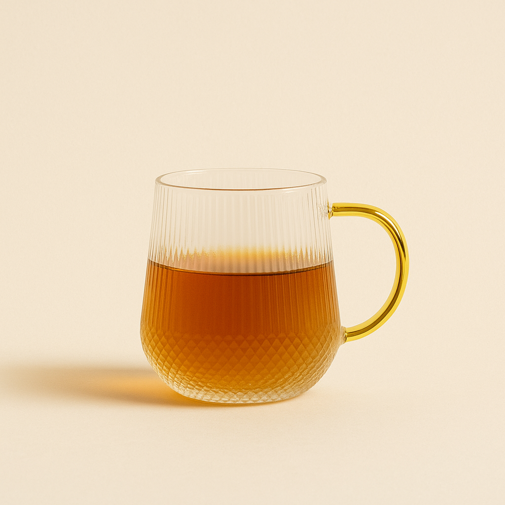 دسته طلایی براق این ماگ، تضاد جذابی با بدنه شفاف آن ایجاد کرده و حس لوکس و مدرنی را منتقل میکند. این طراحی خاص باعث میشود ماگ شما نهتنها برای استفاده روزمره، بلکه برای پذیرایی، دکور آشپزخانه یا هدیه دادن گزینهای فوقالعاده باشد.