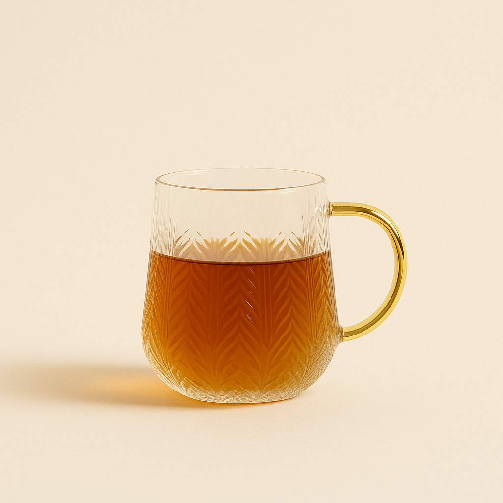 دسته طلایی این ماگ در کنار بدنه شفاف و طرح برجسته برگ، ترکیبی چشمنواز به وجود آورده است. درخشش رنگ طلایی جلوهای لوکس به محصول میدهد و حس گرما، انرژی و زیبایی را منتقل میکند. این طراحی ویژه باعث شده تا ماگ شیشهای طرح برگ نه تنها یک وسیلهی نوشیدنی، بلکه یک قطعه دکوری زیبا برای میز یا آشپزخانه شما باشد.